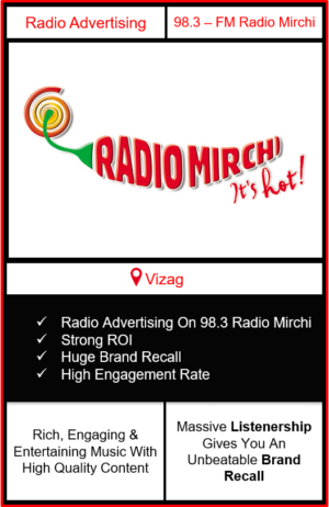 FM Radio Advertising in Vizag is an extremely effective way to grow your business by capturing huge masses & creating “top of the brand recall” in the listener’s mind. Advertising on Radio in Vizag gives your Advertising campaign not only low Ad avoidance as compared to other media but also helps your product or service reach masses. Hence, if you are looking to boost up your business reach & increase the overall brand visibility & brand equity of your brand, Radio Advertising in Vizag should be at the top of your Media Marketing portfolio.