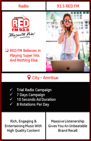 - 8 rotations of 10 seconds each would be played per day consecutively for 7 days on 93.5 RED FM, Amritsar.